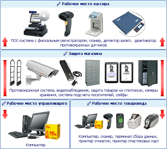 - устанавливается и настраивается торговое оборудование;